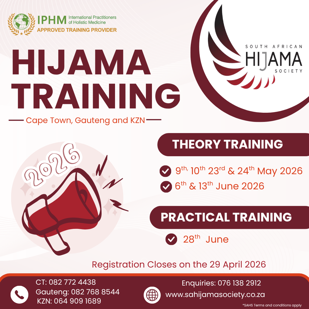 With over nine years of Hijama training experience in South Africa and Saudi Arabia, Nazira leads SAHS with strong medical insight, ethical practice, and a passion for empowering professional Hijama practitioners.
